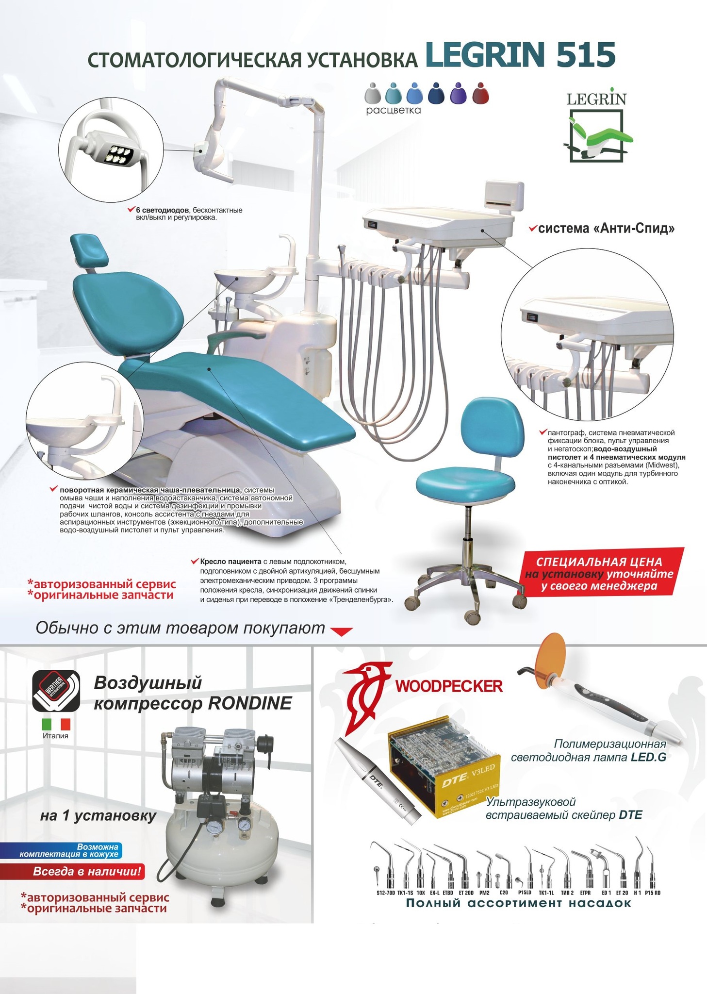 Манометр рабочего давления. Механические регуляторы давления воды и воздуха на каждый наконечник в отдельности. Негатоскоп. Жесткость пантографическому плечу придает пневматический тормоз с кнопкой управления на врачебном модуле.
