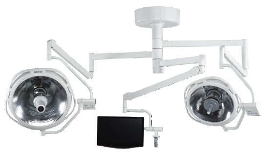 Освещенность: максимум 150 000 люкс. Гарантированная достаточная освещенность для проведения хирургических операций. Повышение температуры: незначимое для хирургов и безопасное для пациентов. Температура в области головы хирурга повышается только на 2 °C (3,6 °F), а в операционном поле только на 7 °C (12,6 °F) при использовании модели HyLite 6700 и на 9 °C (16,2 °F) при использовании модели HyLite 6500. Отсутствует высушивающее воздействие на операционную рану. 2 Цветовая температура и индекс цветопередачи Аналог дневного света, с высокой точностью цветопередачи. В корпусе светильника установлен тщательно разработанный фильтр, который доводит проходящий через него свет до цветовой температуры 4350 K и индекса цветопередачи 96. 3 Влияние на ламинарный поток: не нарушает ламинарный поток. HyLite минимизирует турбулентность ламинарного потока двумя путями: во-первых, он имеет гладкий контур, хорошо скрывающий цилиндрические ручки; во-вторых, потребляемая мощность так мала, что эффект нагревания внешней поверхности действительно низкий. 4 Включение резервной лампы: осуществляется мгновенно. В светильнике HyLite установлено две одинаковых лампы: основная и резервная. В случае отключения основной лампы через 0,2 секунды в светильнике HyLite загорается резервная лампа, автоматически перемещаясь в рабочее положение. Хирург даже не заметит никакой разницы ни в освещенности, ни в положении светового поля. 5 Глубина освещения: 1200 мм (L1 + L2, в соответствии с определением в IEC 60601-2-41). 6 Съемная ручка, которую можно стерилизовать при 134°C. Камера на хирургических светильниках HyLite 6 серии 7 Встроенная камера 8 Камера на держателе 9 Пульт дистанционного управления камерой 10 Настенный пульт управления, возможность управления камерой (опция) Сравнительные характеристики встроенной камеры и камеры на держателе Встроенная камера Камера на держателе Кол-во пикселов ~ 800 000 пикселов 2 000 000 пикселов Оптическое увеличение 26х (f=3,5—91,0 мм, F=1,6—3,8) 10х (f=5,1—50,1 мм, F=1,8—2,1) Электронное увеличение 12х (312х с оптическим увеличением) 12х (120х с оптическим увеличением) Отношение сигнал/шум 50 дБ > 50 дБ Диапазон выдержек 1/50—1/10 000 c 1/2—1/10 000 c Видеовыход FBAS (композитный) Компонентный Модификации и варианты использования хирургических светильников HyLite 6 серии 11 HyLite 6500 Макс. центральная освещенность: 100 000 люкс 12 HyLite 6700 Макс. центральная освещенность: 150 000 люкс 13 HyLite 6500 + 6500 Макс. центральная освещенность: 200 000 люкс 14 HyLite 6700 + 6700 Макс. центральная освещенность: 300 000 люкс Имеется резервная камера 15 HyLite 6500 + 6700 Макс. центральная освещенность: 250 000 люкс Имеется резервная камера 16 HyLite 6700 + 6500 + 6500 Макс. центральная освещенность: 350 000 люкс Имеется резервная камера 17 HyLite 6700 + 6700 + HD-камера Макс. центральная освещенность: 300 000 люкс 18 HyLite 6500 + 6700 + камера Макс. центральная освещенность: 250 000 люкс