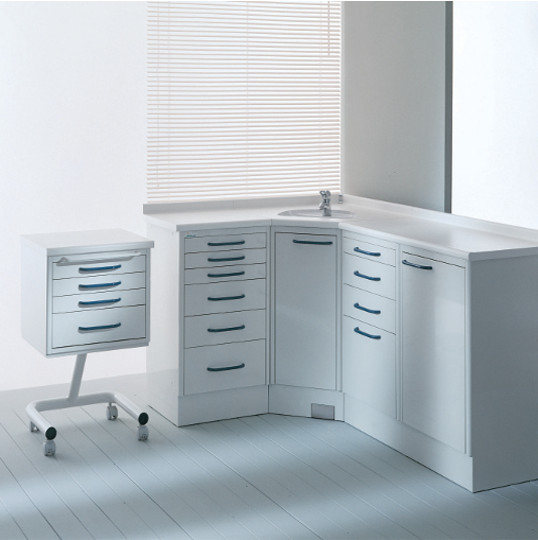 Мебель для стоматологии. Данная линия мебели проста, удобна и эргономична. Ее отличают большой срок службы, практичность. Она, как и другие " мебельные произведения искусства" от Dental Art, изготовлена из современных качественных и нетоксичных материалов, разрешенных к применению в медицинских учреждениях. Имея модульную гибкую систему, данная мебель дает возможность моделировать комплекты индивидуально для каждого клиента и максимально эффективно задействовать рабочее пространство. Фасады, боковые поверхности, а также ручки могут быть окрашены в любой цвет по желанию клиента