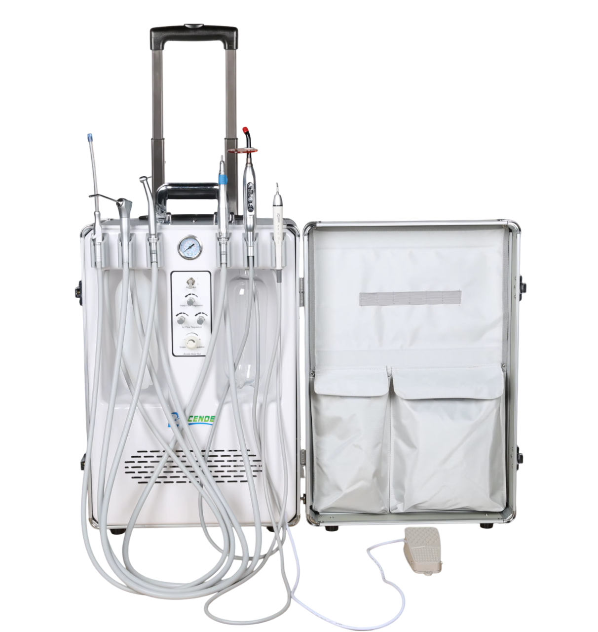 Кроме того, предусмотрен трехходовой шприц для удобства работы, слюноотсос для поддержания чистоты в ротовой полости, а также бутылки для чистой воды и отработанных материалов. -