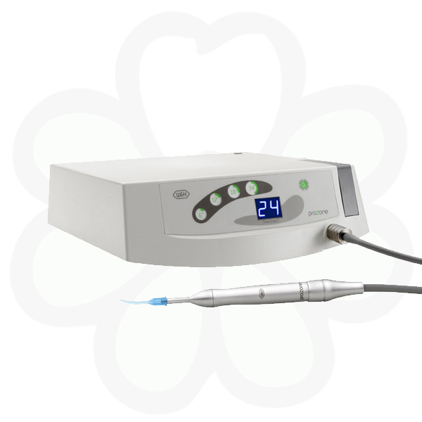 Дезинфекция, предотвращение воспалений Аппарат Prozone вырабатывает озон – газ, который оказывает мощнейший антибактериальный эффект, способствуя скорейшему заживлению ран и лечению инфекций, поэтому он может быть востребован в самых разных сферах стоматологии. Проникая в фиссуры и дентинные канальцы, озон оказывает также успокаивающее воздействие на нервные окончания сенсорных органов и стимулирует ток крови. Поэтому озон является великолепным средством обезболивания. Озон можно использовать в хирургии при обработке полости рта перед хирургической операцией, и непосредственно на участке лечения до и после хирургической операции, чтобы обеспечить полную стерильность. Кроме того, озон имеет органическое происхождение и является превосходным коагулянтом. Наконечник аппарата предназначен непосредственно для подачи озона от базового блока к месту обработки. Насадка Core Prozone предназначена для общего применения, подготовки полостей, лечения кариеса и т.п. Насадка Endo Prozone имеет игольчатую форму и используется для эндодонтии. Насадка Perio Prozone имеет форму тонкого капиллярного наконечника, применяется для обработки пораженных пародонтозом десневых карманов. Принцип действия Аппарат Prozone подключается к сети электропитания, он оснащен четырьмя программными кнопками для различных случаев применения озона. Подача озона к месту обработки происходит через специальный наконечник с насадкой. Озон в аппарате Prozone образуется под действием высокого напряжения, приложенного к керамической пластине. Этот принцип называется “коронным разрядом”. Озон генерируется в специальной камере, расположенной в базовом блоке. Для получения озона с помощью эффекта “короны” очень важно, чтобы воздух внутри камеры генератора озона был сухим. Поэтому сразу же после включения прибора автоматически выполняется продувка (30 – 90 секунд), которая гарантирует полное удаление влаги, которая могла оставаться в аппарате. Затем следует установить нужную насадку и выбрать необходимую программу. Перед началом процедуры наконечник Prozone с установленной на нем насадкой следует подвести как можно ближе к месту выполнения процедуры (на расстояние 1-2 мм). Подача газа активируется нажатием на педаль. При применении аппарата рекомендуется всегда использовать высокий уровень расхода газа - 50 л./мин. В конце каждой процедуры снова происходит автоматическая десятисекундная продувка. В аппарате предусмотрена серьезная система безопасности: каждый час работы генератора озона на дисплее появляется надпись “CF“, которая напоминает, что нужно проверить состояние фильтра. приблизительно через 100 часов работы генератора озона на дисплее появляется надпись “CO“, напоминающая, что нужно проверить параметры процесса образования озона. в случае продолжительной непрерывной работы (перегрузка) аппарат автоматически ограничит количество вырабатываемого озона. при обнаружении ошибки аппарат Prozone сразу же возвращается в предпусковой режим. Любая ошибка прерывает подачу озона и выполнение процедуры. Информация о сферах применения Аппарат Prozone предоставляет врачам-стоматологам возможность применять озон в самых разных областях стоматологической практики, а именно – в эндодонтии, пародонтологии – при лечении любых заболеваний пародонта, в ортодонтии, в хирургии и 
