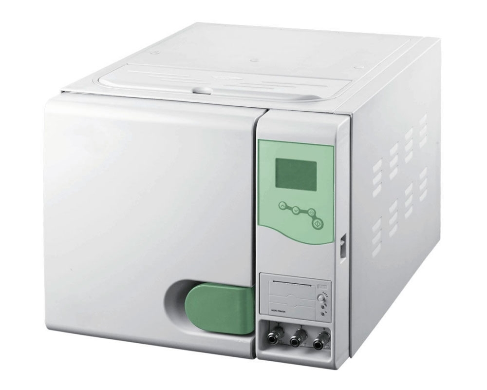 134°СМодель дополнена тремя лотками для раскладки стерилизуемых инструментов и механическим замком (для надежной фиксации дверцы). Корпус из специального пластика украшает функциональный LCD-дисплей.