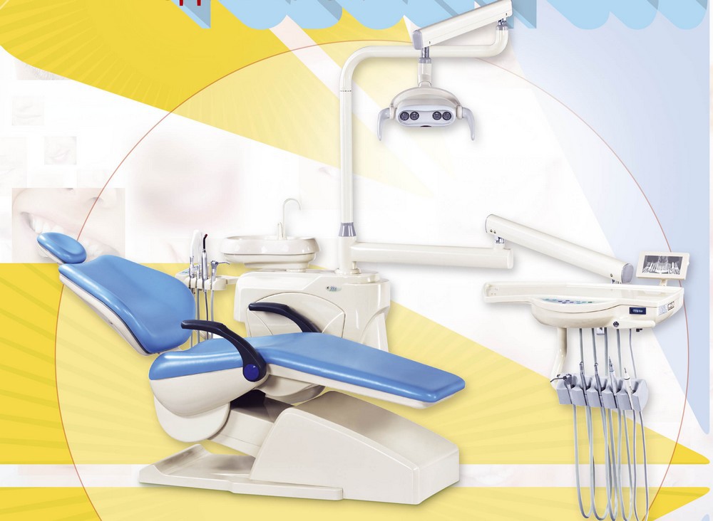 Нижняя подача, 4 шланга, 1 свободное гнездо, поворотная керамическая плевательница, светодиодный светильник, 2 стула